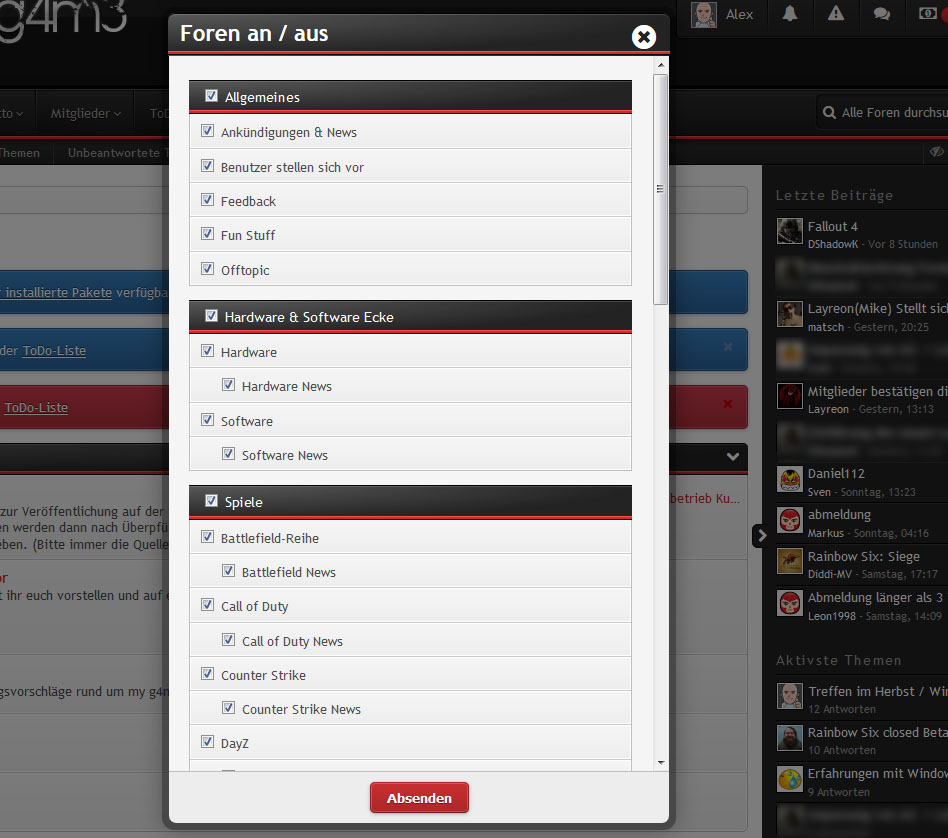 Wenn euch bestimmte Foren nicht interessieren oder einfach nur nerven könnt ihr diese Foren ausblenden. Geht dazu einfach in unser Forum klicke oben rechts auf das Symbol "Foren an / aus" und wähle aus was du sehen möchtest und was nicht. Die ausgeblendeten Foren erscheinen dann auch nicht mehr unter "Letzte Beiträge".