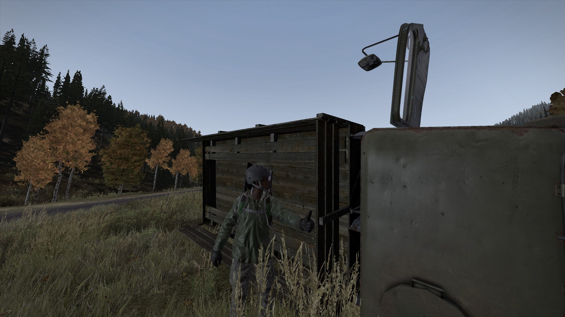 hatte mal wieder bock auf dayz und mega looten. also los auf einen einsamen server und palönk. auf der burg gespawnt und da stand der schöne laster. super dachte ich, da kann ich schneller noch looten. also mit dem laster aus der burg manövriert und im wald promt am baum verhackt. dann der erste fehler: aussteigen zur hangseite. ---- you are dead. och nö. alles weg was ich tagelang gesammelt hatte. mist. neu gespawnt und so schnell wie möglich richtung unfallstelle. nach beschwerlicher reise den laster gefunden aber leider war alles schon weg.
